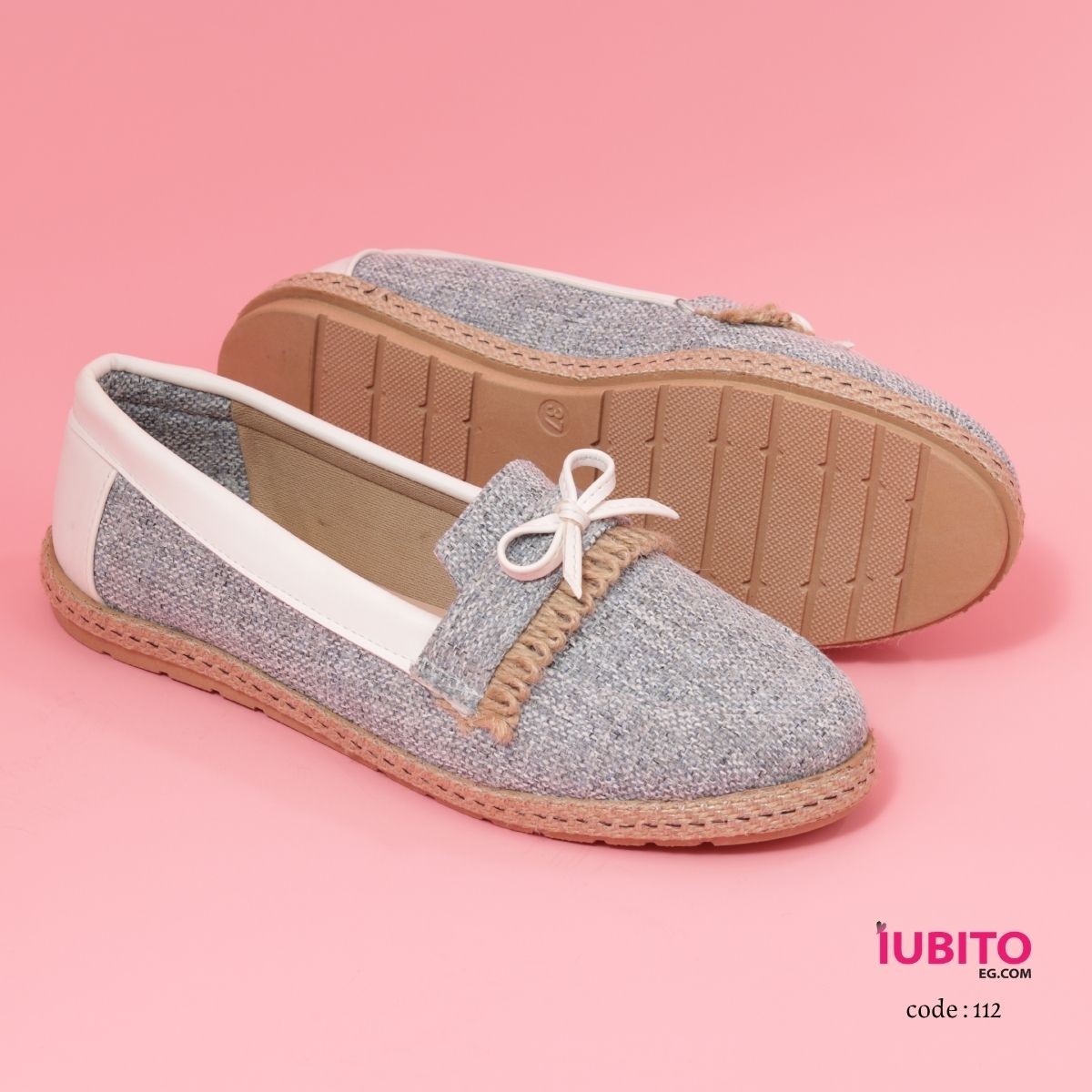 استمتعي بالراحة والأناقة مع حذاء نسائي كاجوال من IUBITO – موديل 112، تصميم عصري وخفيف بخامة كتان مستورد ونعل مريح مثالي للمشاوير اليومية.